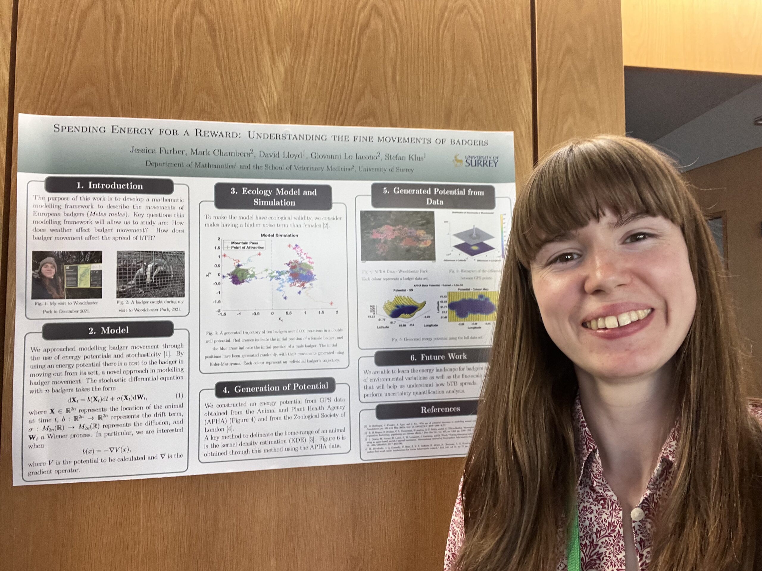 I have worked on a range of projects. In my PhD, I mainly focused on badgers. I had GPS data from different badgers, which I used to understand their movement patterns, and created a model to predict their movements. Since then, I have worked on a mathematical model on a mosquito population and done a sensitivity analysis to understand which of our input parameters provide the most variation in the output of the model. This is useful to understand where field work needs to take place to gather data to input into the model.